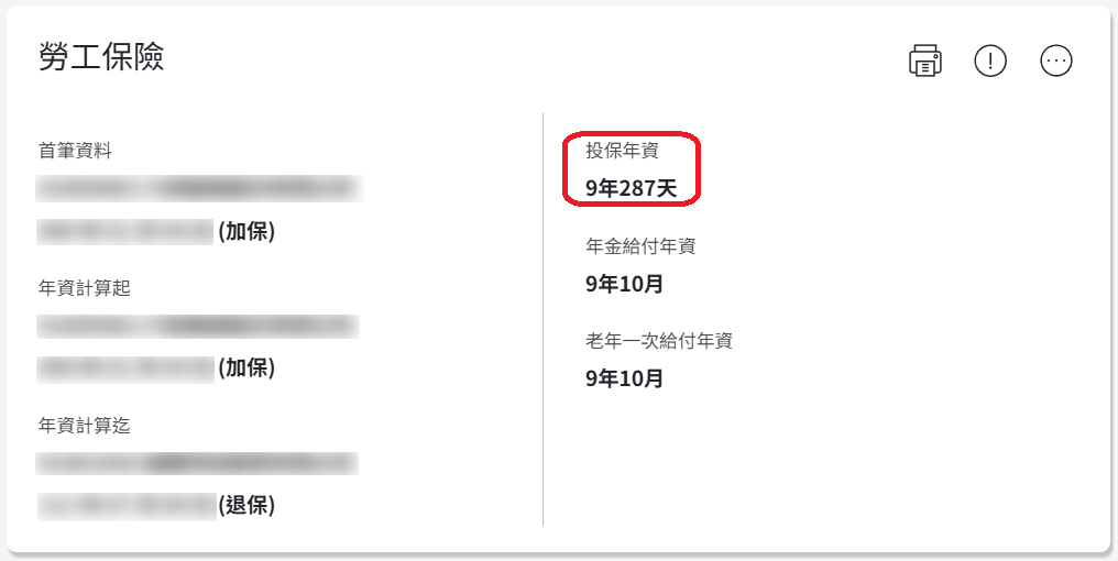 登入後可以直接看到自己的勞保總覽,原來七蛙的年資還那麼菜,要再多努力幾年,往15年以上邁進XD